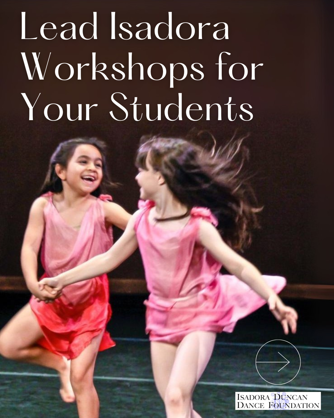 The Isadora Duncan Dance Foundation will be hosting a Curriculum Workshop for NYC-based public, private, and charter school teachers. Completion of this one day workshop will provide you with the lesson plans and tools needed to lead a 2 class unit plan on Isadora Duncan.